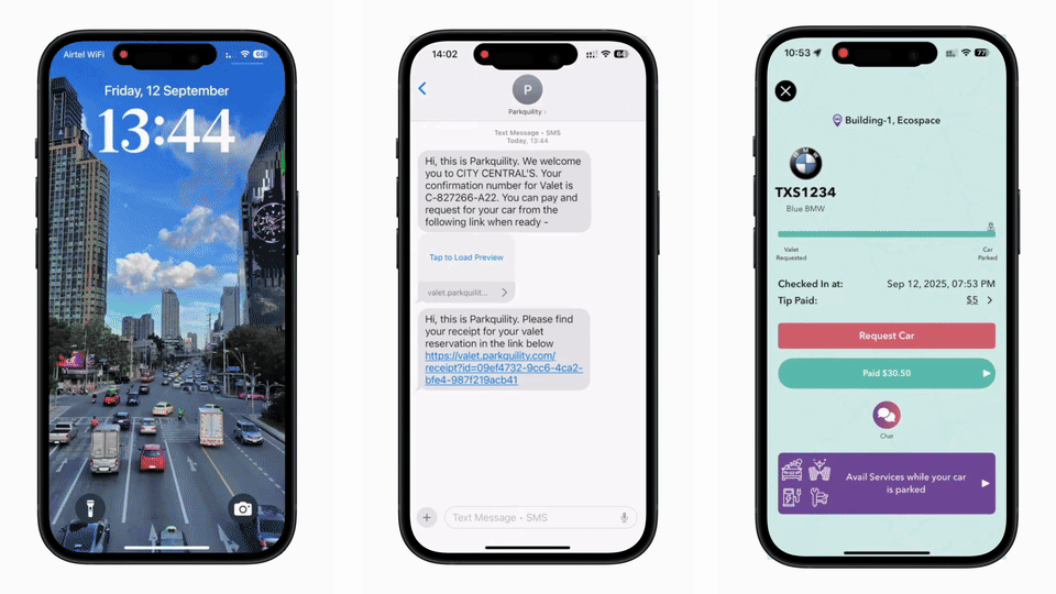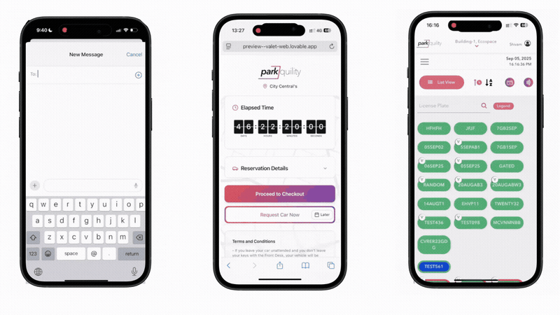 Email or call us at any time, or respond to a confirmation text for real time conversational interaction to extend a session, retrieve a vehicle , get a copy of your receipt, etc.